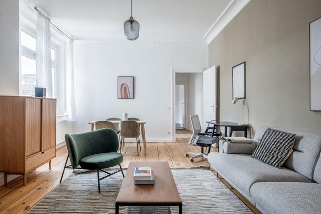 Feel at home in this modern 39m2 apartment located on the second floor, completely exterior-facing with views over the bustling main street. The apartment features a double bedroom, a cozy living room, a dining area, and a fully equipped kitchen, along with a full bathroom in the attic. It's the perfect retreat after exploring Berlin's vibrant cosmopolitan scene.