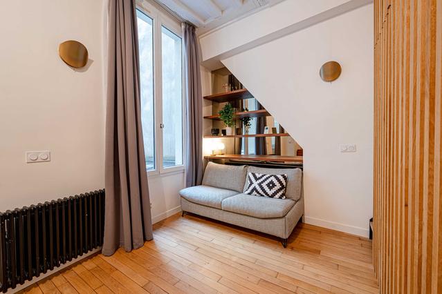 Discover a cozy studio located on the third floor without an elevator, nestled in the heart of Paris's 4th arrondissement on rue du Pont Louis Philippe. This exceptional location combines historical charm, Parisian elegance, and immediate proximity to the city's most beautiful monuments. Perfect for up to three guests, the studio features a double sofa bed and a single bed, with linens provided.