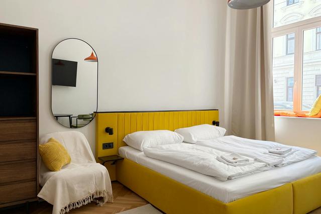 Stay in style at this beautifully renovated one-room apartment, blending traditional Viennese charm with modern comfort. Located on the 2nd floor of a classic Viennese old building, this apartment features a hotel-quality box spring double bed, a dedicated workspace, and a fully equipped kitchen for your convenience. 🛋️🍽️